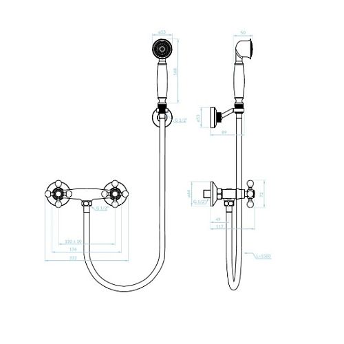 Antikolt zuhany csaptelep, réz öntvény, tartós, kopásálló antikolt felülettel