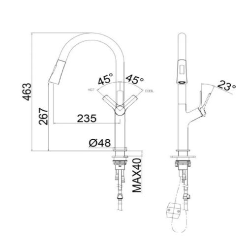 Típus: Magasított mosogatócsaptelep, érintéses, szenzoros, kihúzatós, 2 funkciós zuhanyfejjel