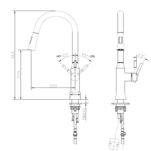 Kétfunkciós kihúzható mosogató fej (normál vagy zuhany funkció)