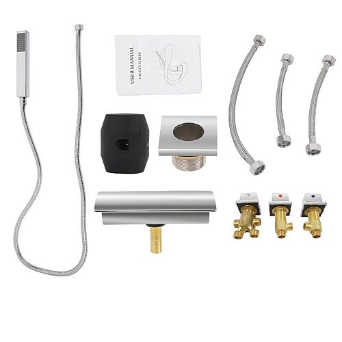 5 részes csaptelep (hideg-meleg szelep, zuhanyváltó, kifolyó, kézi zuhanyfej)