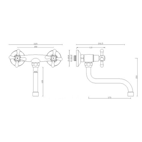 Antikolt fali mosogató csaptelep - alsó kifolyású